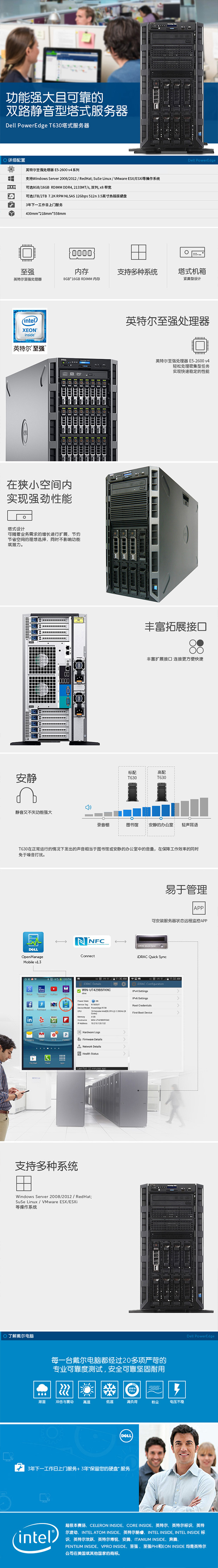 戴尔 T630 塔式服务器(E5-2630V4/16G*2/2T*3SAS热插拔/DV