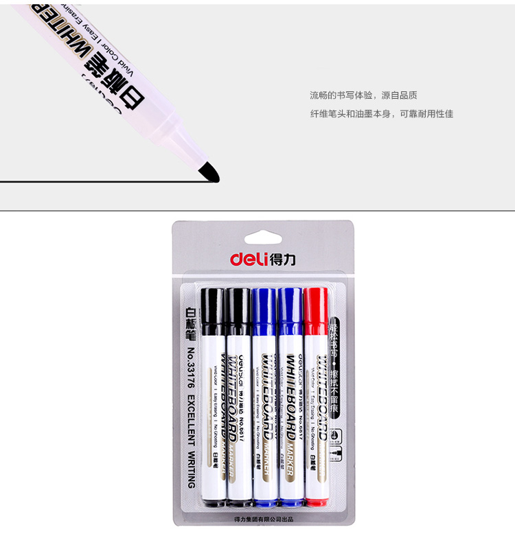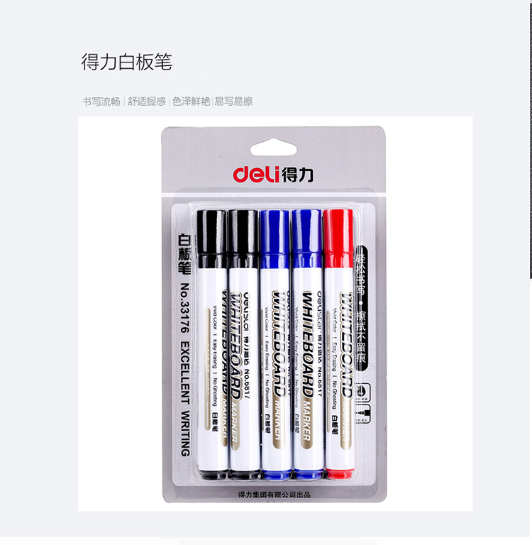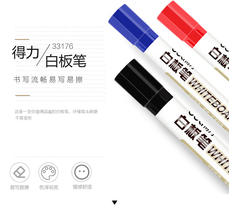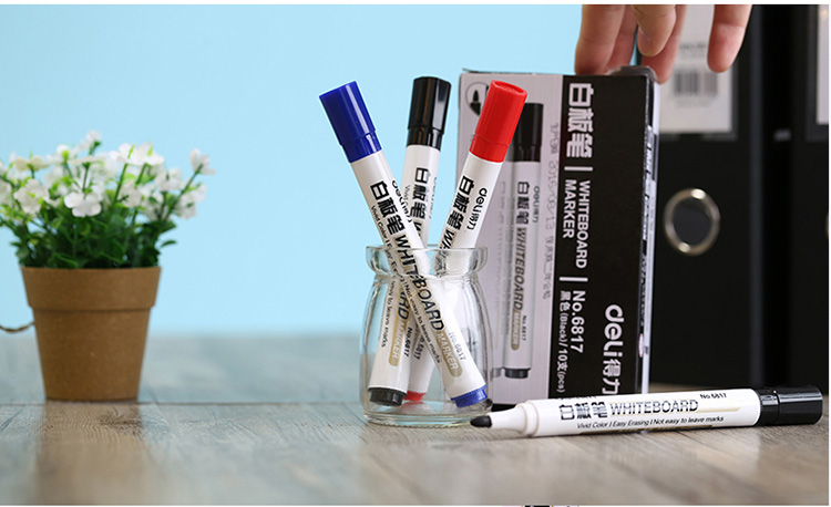 得力(deli)办公会议可擦易擦白板笔 10支/卡(7黑+2蓝+1红)33176